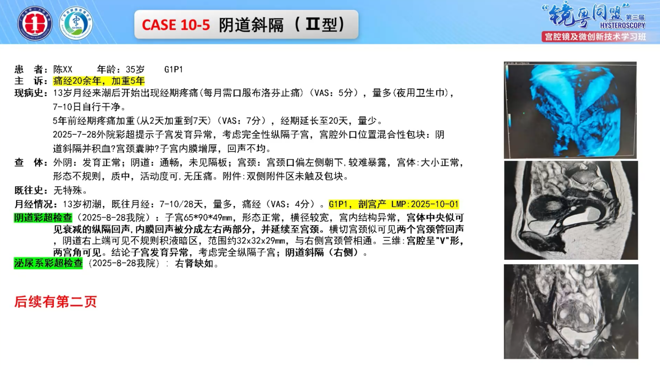 阴道内镜检查+阴道斜隔隔板切除术+子宫纵隔切除